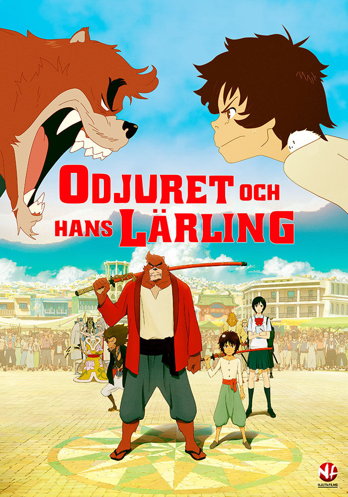 Odjuret och hans lärling visas med japanskt tal och svenskt undertext