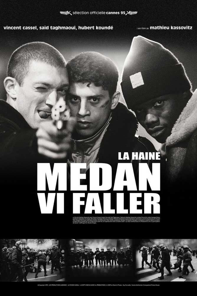 Filmens franska originaltitel är La Haine, som ordagrant betyder "hatet". På svenska gick filmen upp på bio under titeln Medan vi faller. Bakgrunden är att det i det välskrivna manuset förekommer en historia om en kille som faller från en skyskrapa och galghumoristiskt konstaterar: ”Det är inte fallet som räknas, utan hur man landar.”